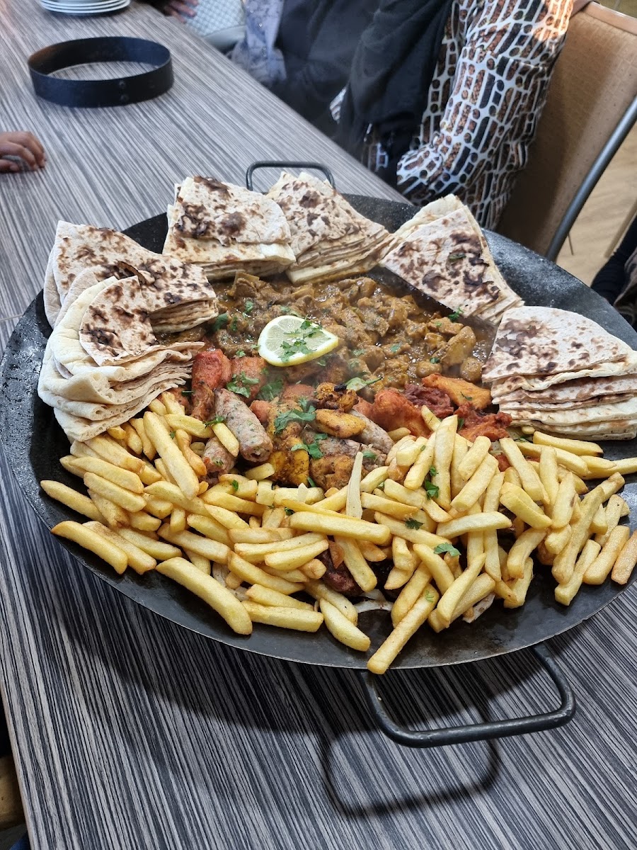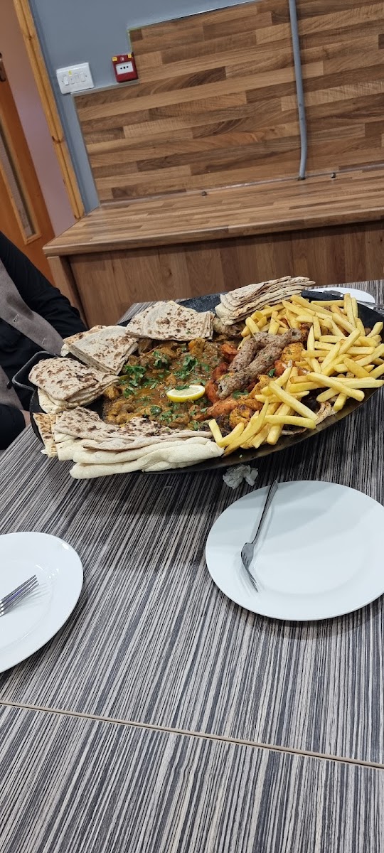 “Overall the food was good curry was great chicken very dry, fish nice, kebabs nothing to rave about chops they was very tasty seemed more like wedding food to me. Staff very nice talkative and respectful . Food definitely came out piping hot they placed us near to the window at the back and the smell of fire was a little off putting outside in yard and also some flies around table that caused a little uproar with kids. Managed to get rid. Place itself very big nothing to shout loud about simple and reasonable. I guess the tawa is not worth paying 60.00 pounds 30.00 is fine for food. The half price deal should always be on as its not spectacular like I said decent food.”